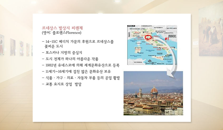 - ¸£³×»ó½º ¸£³×»ó½º ¹ß»óÁö ÇÇ·»Ã¼ (¿µ¾î: Ç÷η£½ºFlorence) - 14-15C ¸ÞµðÄ¡ °¡¹®ÀÇÈÄ¿øÀ¸·Î ¸£³×»ó½º¸¦ ²ÉÇÇ¿î µµ½Ã - Å佺ī³ª Áö¹æÀÇ Áß½ÉÁö, - µµ½Ã Àüü°¡ ÇϳªÀÇ ¾Æ¸§´Ù¿î ÀÛǰ - 1982³â À¯³×½ºÄÚ¿¡ ÀÇÇØ ¼¼°è¹®ÈÀ¯»êÀ¸·Î µî·Ï - 11¼¼±â~16¼¼±â¿¡ °ÉÄ£ ¸¹Àº ¹®ÈÀ¯»ê º¸À¯ - ½Äǰ¡¤°¡±¸¡¤ÀǷᡤÀÚµ¿Â÷ ºÎǰ µîÀÇ °ø¾÷ Ȱ¹ß, - ±³Åë ¿äÁö·Î »ó¾÷ ¹ß´Þ